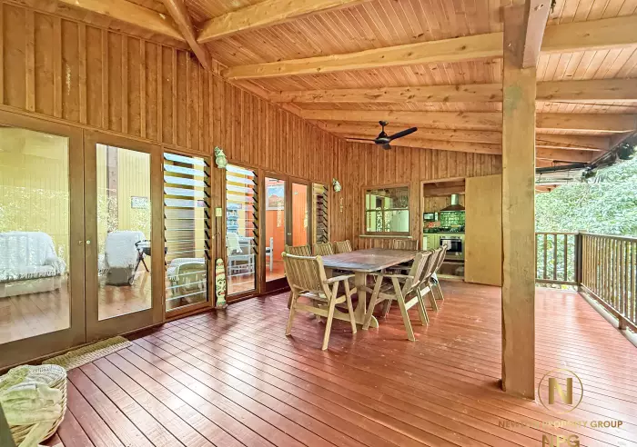 Designed to embrace its natural setting, the expansive timber deck is ideal for entertaining, relaxing or simply soaking up the peaceful rainforest atmosphere.