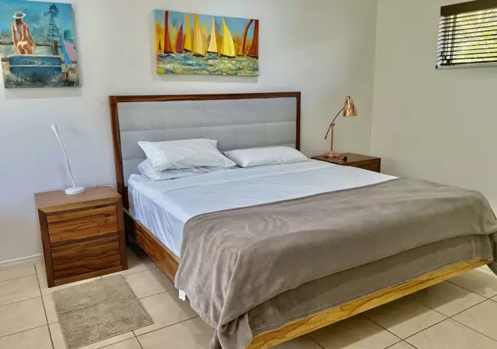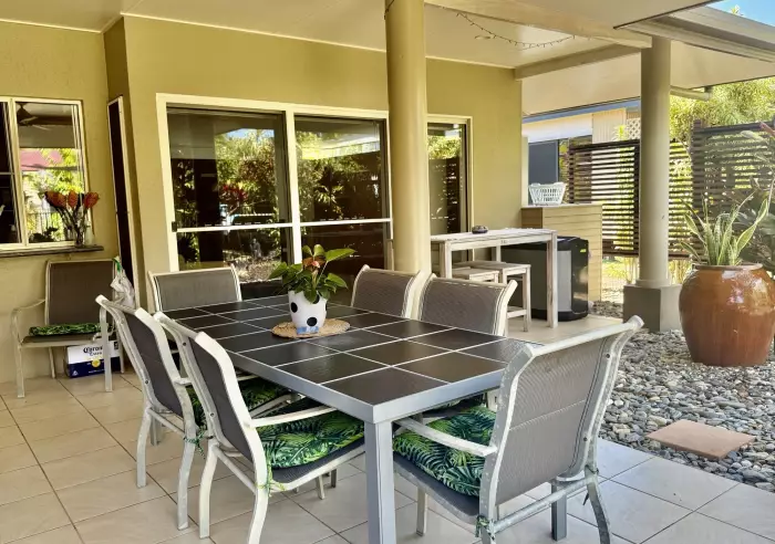 Step outside to your private entertaining area, surrounded by lush tropical gardens. The home is located in a quiet neighbourhood, just one street back from the beach and close to schools and shops.