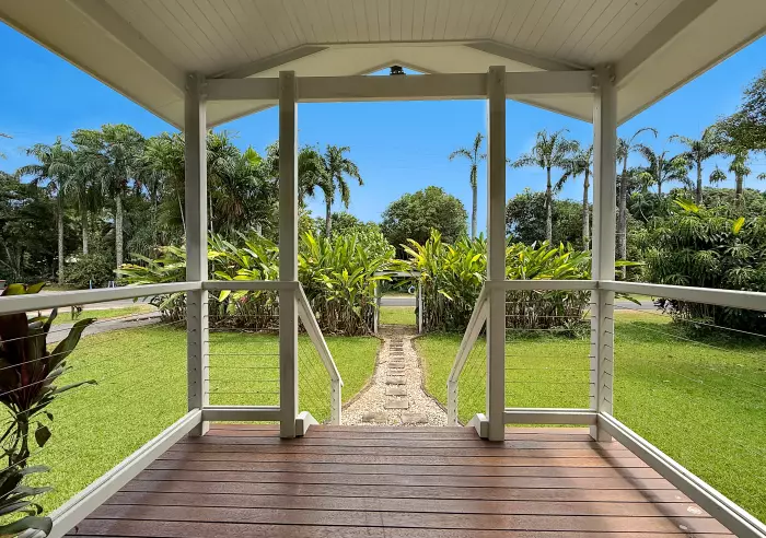 Tucked away in a quiet, leafy cul-de-sac just moments from the sand, “Whitehaven” is a beautifully renovated Queenslander that captures the heart of Mission Beach living — relaxed, tropical, character-filled and private, all on a rare half-acre block surrounded by lush rainforest.