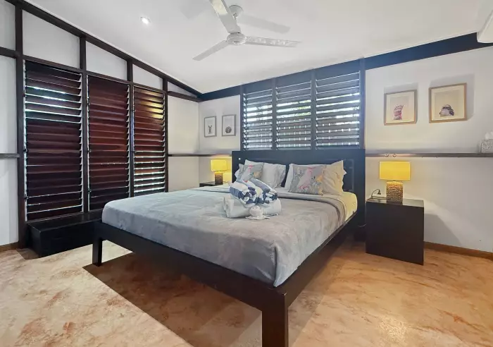 Nestled in tropical gardens across from the beach, Sunbird Cottage is a stylish 2-bed retreat overlooking the resort-style pool. Enjoy your private patio with BBQ, relax in air-conditioned comfort, and take advantage of the easy access to cafés, shops, and the sea — tropical living made easy!