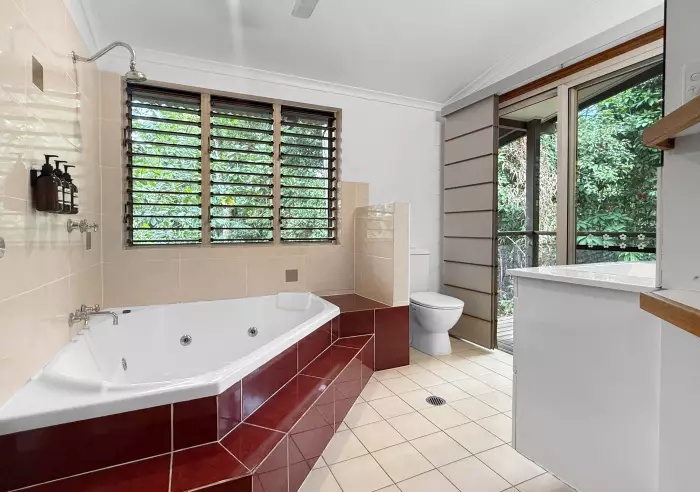 Tucked in lush tropical gardens and just across from the beach, Possum Cottage is a peaceful rainforest escape with spa bath, open-plan living, kitchenette, and two private patios — one with BBQ and one overlooking the rainforest. Fully fenced for pets and designed for pure relaxation!