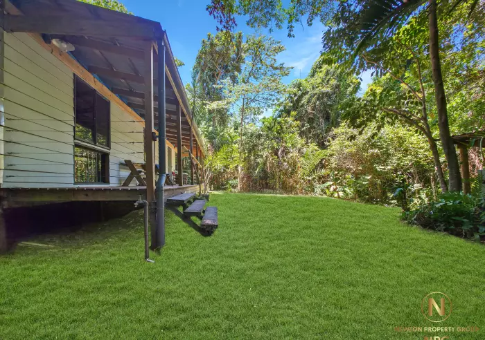 Surrounded by established greenery and birdsong, the home enjoys a peaceful, private setting with a welcoming front verandah — the perfect place to unwind with a morning coffee or evening drink as the rainforest comes alive around you 🌴