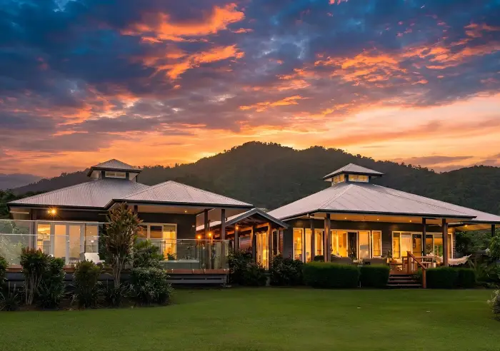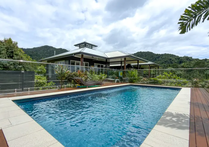 Built by acclaimed local builder Ken Fox Homes and recognised with the 2019 Far North Master Builders Award, the home has been composed as a series of interconnected pavilions linked by breezeways and expansive timber decking. The design is both refined and deeply responsive to its tropical setting, creating a home that feels open, private and effortlessly connected to the landscape.