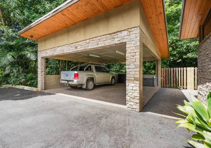 Practicality has been executed on the same scale as presentation, with a substantial high-clearance shed and mezzanine, double car accommodation, and an 18kW solar system with battery storage already in place. Beyond the built improvements, the grounds offer an established orchard of mature fruit trees, visiting cassowaries and a setting that feels deeply private, lush and unmistakably North Queensland.