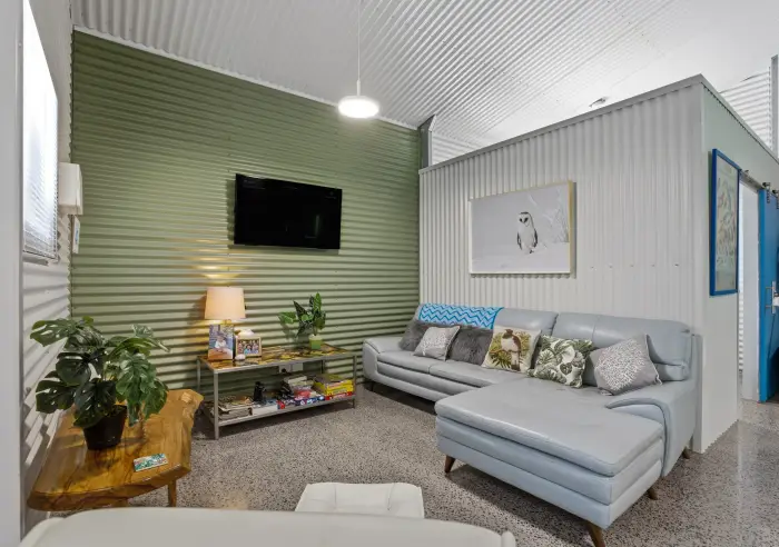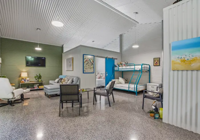 Positioned within the substantial 6-bay shed is a well-presented 1 bedroom, 1 bathroom dwelling that is comfortable, functional and easy to maintain. Inside, the home features polished concrete floors, Colorbond walls and ceilings, air conditioning, gas hot water, and a practical open-plan layout with a small lounge, dining area and kitchen. It is neat, simple and well suited to relaxed coastal living, with a 5kW solar system adding even more everyday practicality.