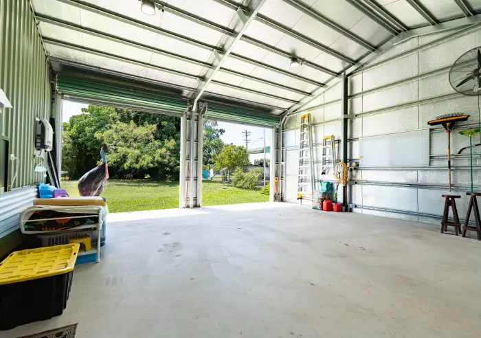 The shed itself is a standout feature. The current dwelling is housed within the 2 central bays, while the 2 open undercover bays are fitted with lights and ceiling fans, creating a great space for entertaining, working on projects or simply unwinding after a day on the water. The 2 roller-door bays on the opposite side are fully insulated, making them ideal for secure storage of boats, caravans, vehicles, tools or extra gear. At the rear, the filleting bench and outdoor shower are a perfect fit for the beach-and-boat lifestyle this location is known for.